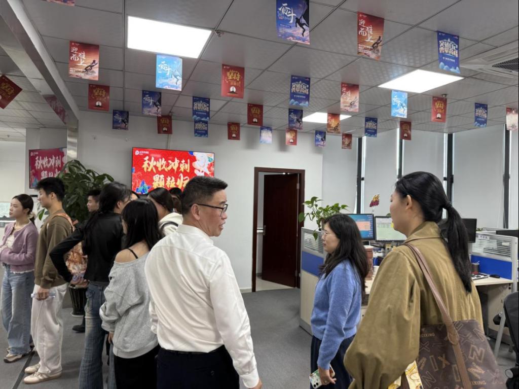 企业负责人详细介绍了太平洋保险集团的发展历程与行业地位,带领学生深入实地工位现场参观工作流程和氛围,了解金融保险业务、客户服务流程及风控体系,让学生在真实工作场景中体会到理论知识的应用价值。公司还重点介绍了其多序列职业晋升体系与完备福利体系,帮助学生树立清晰的职业规划与成长路径。