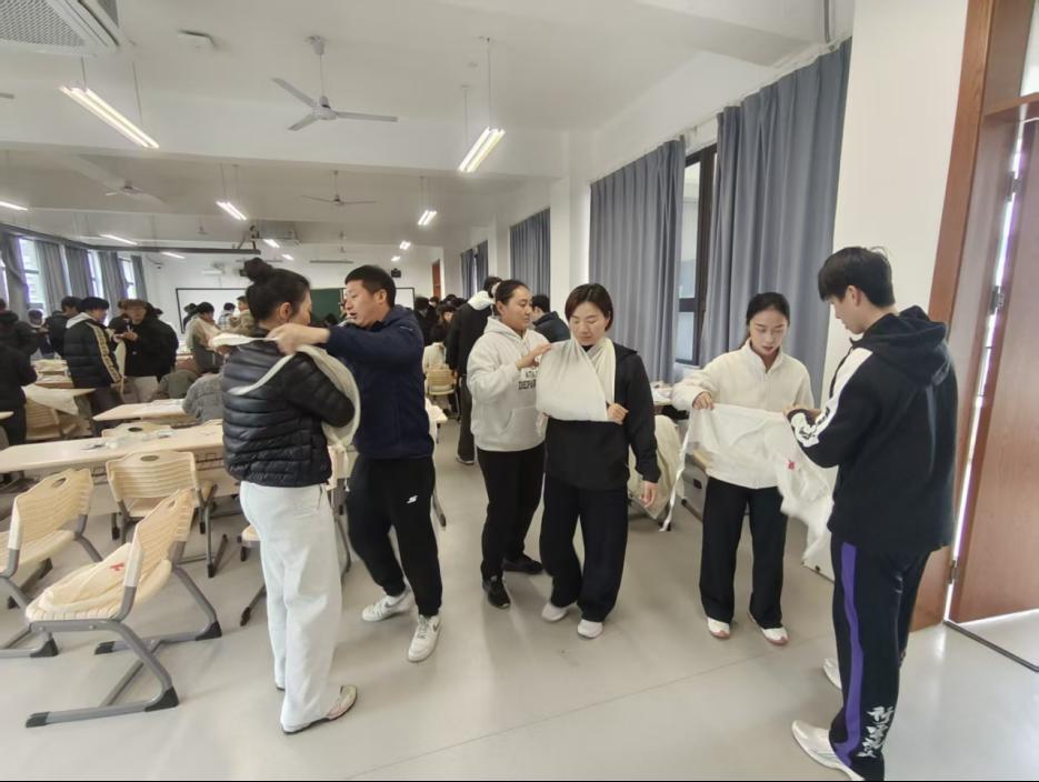 开班仪式上,现代管理学院副院长朱秀清出席并发表讲话。朱秀清强调,体育运营与管理专业的师生不仅要有专业的体育技能,更需具备守护生命的专业素养。急救技能是体育行业从业人员的必备技能,也是社会责任的体现。本次培训采取“师生同堂学急救”的模式,共有7名体育教师与103名专业学生同堂学习,充分展现了学院对安全教育的高度重视以及师生共同进步的良好风貌。