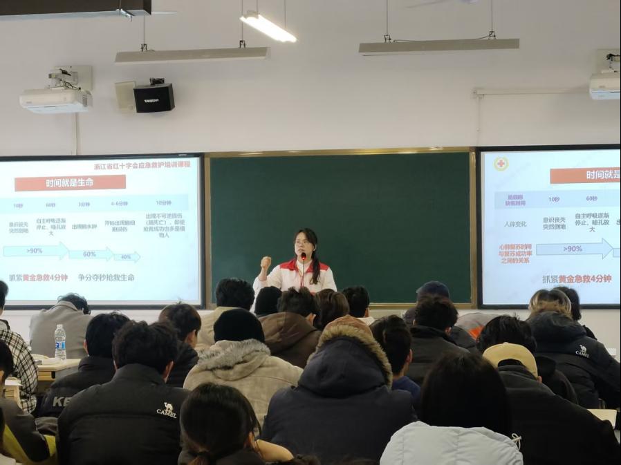 为深入贯彻落实“健康第一”的教育理念,进一步提升体育运营与管理专业师生的应急救护能力,普及急救知识与技能,筑牢校园安全防线,2026年3月20日,在我校瓯江口校区教学楼B506成功举办了“2026年春季学期体育运营与管理专业红十字救护员培训班”。本次培训由现代管理学院体育运营与管理专业主任郭秀清老师联络鹿城区蒲鞋市街道,特邀鹿城区红十字会专业师资团队进行授课与考核。