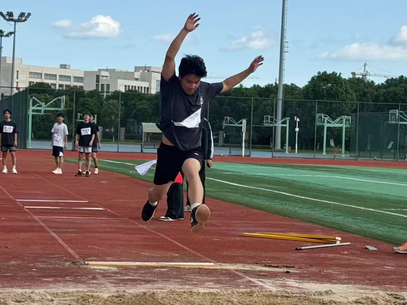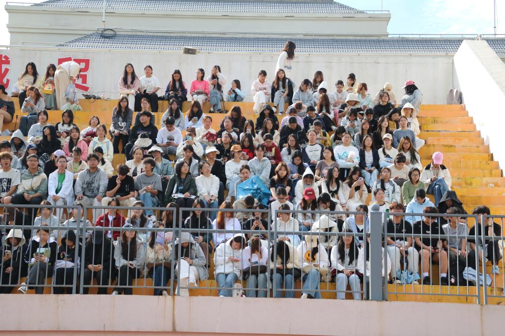 田赛区域同样亮点纷呈,竞技氛围浓厚。跳高、跳远项目中,选手们精准把控助跑节奏,踏板处蓄力发力后腾空跃起,优美弧线划过赛场时,鼓声骤然加急、拉拉队欢呼声响彻云霄;铅球、实心球项目里,参赛学子沉身、转体、挥臂动作连贯规范,器械在空中划出精准抛物线,落地瞬间鼓点与掌声同步响起,为力量的绽放喝彩。赛场各处,工作人员与服务同学的身影忙碌而有序:检录处的工作人员仔细核对运动员信息、分发号码布,确保参赛流程零差错;跑道旁的工作人员及时清理场地、指引路线,保障赛事安全推进;身着统一服饰的同学们穿梭在赛场内外,为运动员递水补给、搀扶体力不支的选手,在观众席周边维护秩序、传递赛事资讯,用耐心与热忱填补每一处服务细节。期间,裁判员团队秉持“严肃、认真、公正、准确”原则,严格把控赛事流程与判罚标准;后勤、保卫工作组从物资供给、现场安全维护到应急处置,全方位为赛事保驾护航。