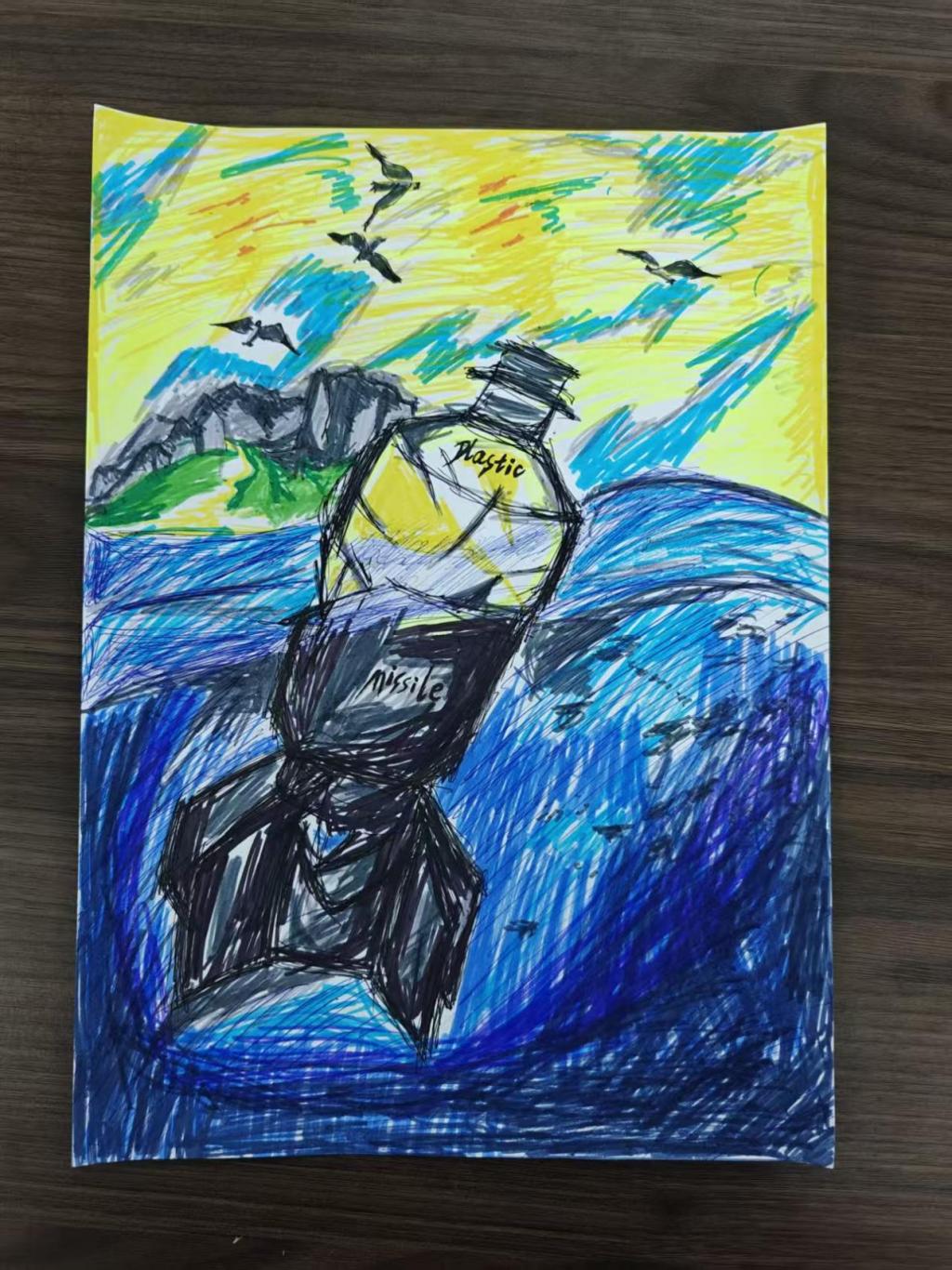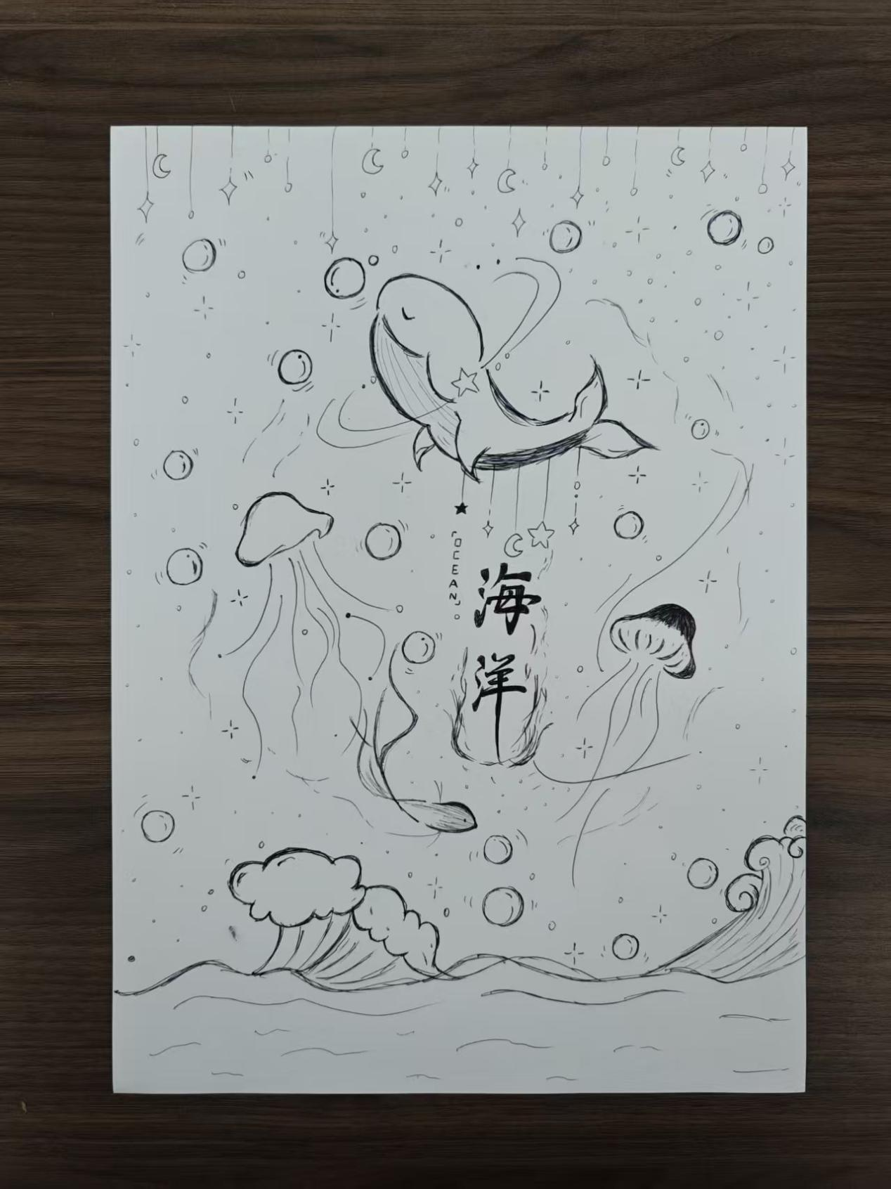 活动期间,现场组织有序,参与同学态度积极。主持人首先结合100年来全球58场海啸致26万余人遇难的历史数据,系统阐释世界海啸日的设立背景与核心意义,引导师生深刻认识防灾减灾与海洋保护的重要性和紧迫性。创作环节中,参与同学使用现场统一提供的A4纸及颜料笔,全身心投入作品创作:部分作品通过呈现海洋生态原貌,传递生态保护的重要性;部分作品融入海啸预警标识、防灾防护场景等关键元素,强化灾害防范知识的可视化传播。