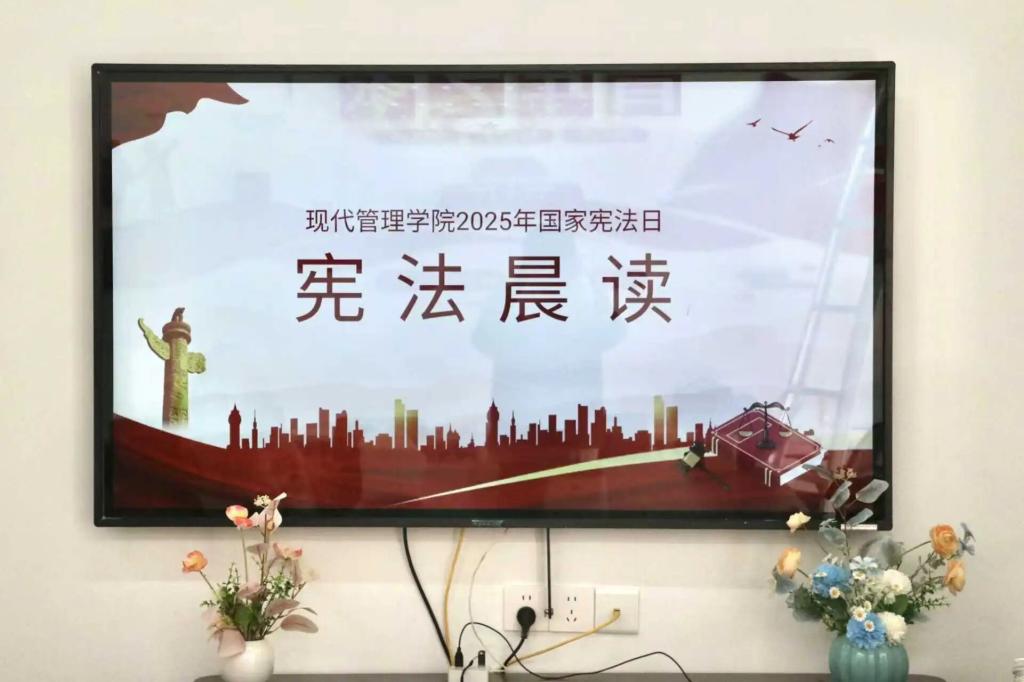 宪法是国家的根本大法,是治国安邦的总章程。为深入学习宣传宪法知识,厚植青年学生的法治信仰,弘扬宪法精神,增强学生的法治观念和公民意识,营造全员尊法学法守法用法的浓厚校园氛围,现代管理学院团总支学生会在青年之家精心开展宪法晨读活动,35名同学齐聚一堂,在庄重的学习氛围中感悟宪法力量,践行法治精神。
