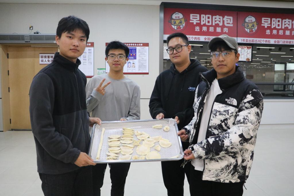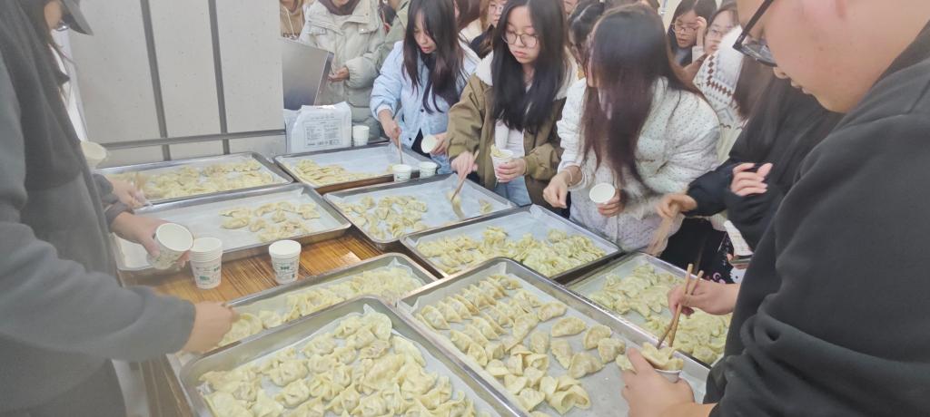 冬至寒意浓,校园暖情涌。活动现场暖意融融、笑语盈盈,同学们挽起衣袖擀皮、捏褶,大家围坐一桌分工协作,和面、填馅、塑形有条不紊,指尖翻飞间,一个个形态各异的饺子整齐排列,白面香、馅料香交织弥漫。包饺子环节中,同学们同包水饺、共话日常,在冬至习俗分享与校园趣事畅谈中消融冬寒。活动既让同学们深度体验传统民俗,更以美食为媒凝聚学院向心力,为校园文化节增添温暖亮眼底色。