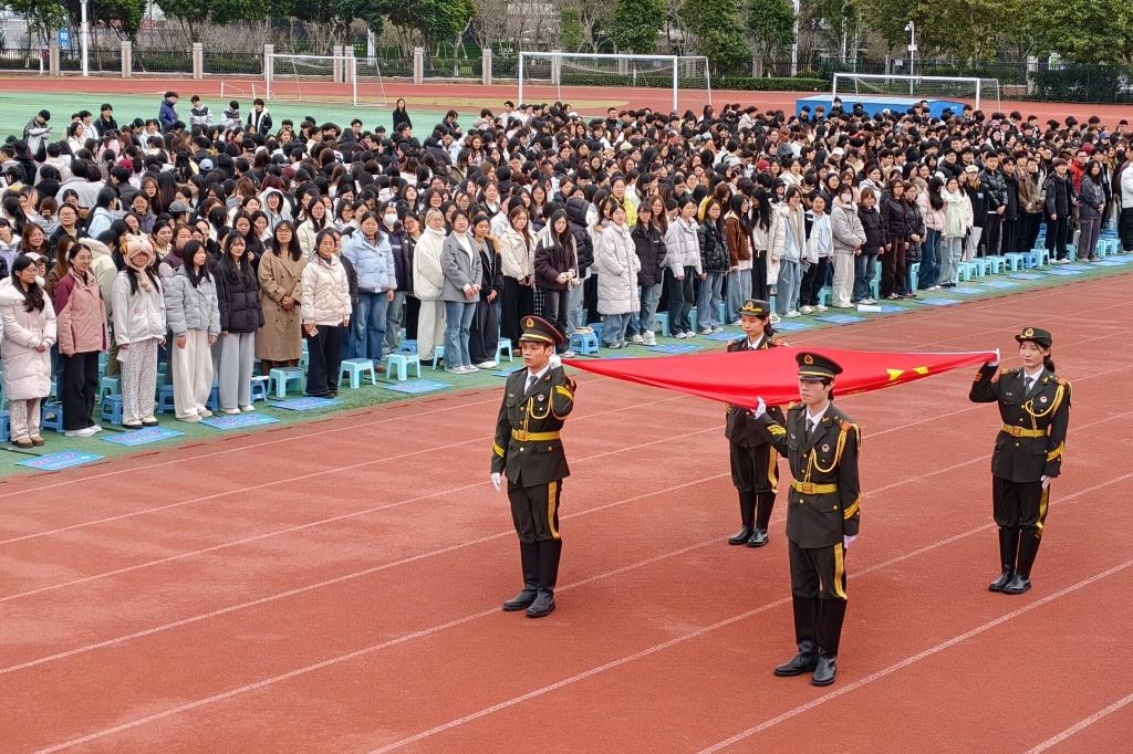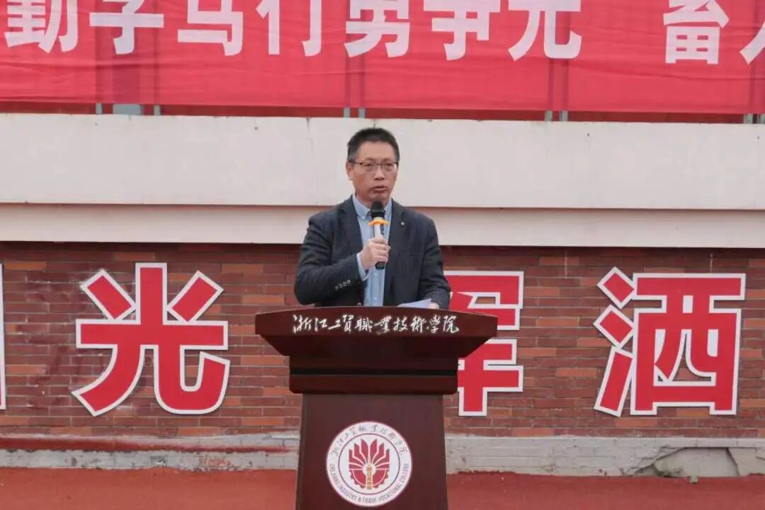 春风送暖启新程,奋楫扬帆正当时。为深入落实教育部“健康第一”的教育理念,凝聚全院师生奋进力量,引导全体学子以昂扬姿态开启新学期新征程,2026年3月8日下午,浙江工贸职业技术学院现代管理学院2026年春季学期始业教育大会于瓯江口校区操场隆重举行。学院党政领导班子、辅导员、班主任及2024级、2025级全体学生齐聚一堂,共话成长,共赴新程。大会在雄壮的《中华人民共和国国歌》声中拉开帷幕。