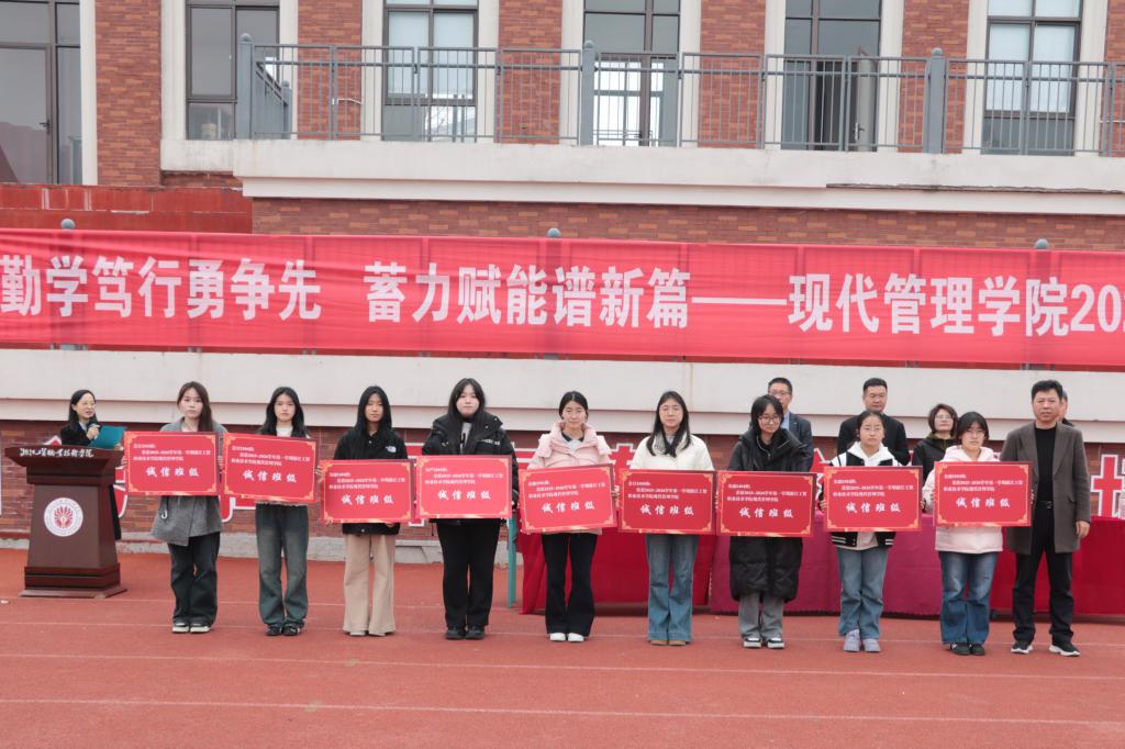 接下来是颁奖典礼环节,学院对过去一学期中表现突出的集体和个人进行了隆重表彰。浙江省卡尔马克思杯、地掷球和轮滑冠军、先进班集体、优秀学生干部等,这一张张的荣誉证书,一次次的热烈掌声,既是学子们拼搏奋斗的勋章,更彰显了现代管理学院育人成效,为全体师生树立了榜样标杆。