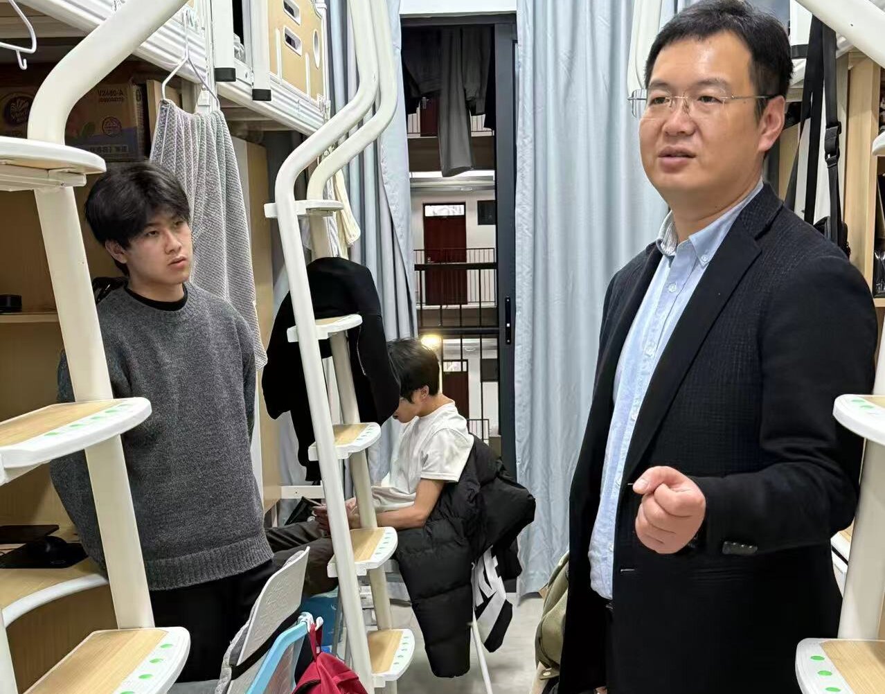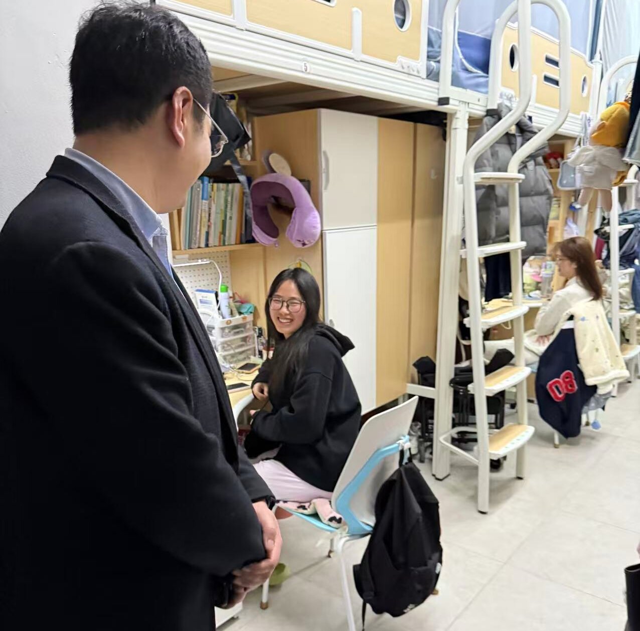 一次走访,一份关怀;一句叮咛,一片温情。邵超群书记此次深入宿舍,不仅拉近了师生之间的距离,更让同学们真切感受到学校“以生为本”的育人理念。宿舍是同学们在校园里的第二个家,是学习生活的重要阵地,也是习惯养成、品格锤炼的关键场所。邵书记最后叮嘱大家:良好的环境需要每个人共同守护,安全底线需要每个人共同坚守。希望全体同学以此次走访为契机,自觉维护宿舍卫生,杜绝违规电器,拒绝抽烟等不文明行为,相互提醒、相互监督,共同营造整洁、安全、和谐、温馨的住宿环境。学校也将持续畅通反馈渠道,认真听取每一位同学的心声,不断优化服务保障,让关怀更有温度,让管理更有力度,与大家一起携手共建美好校园。