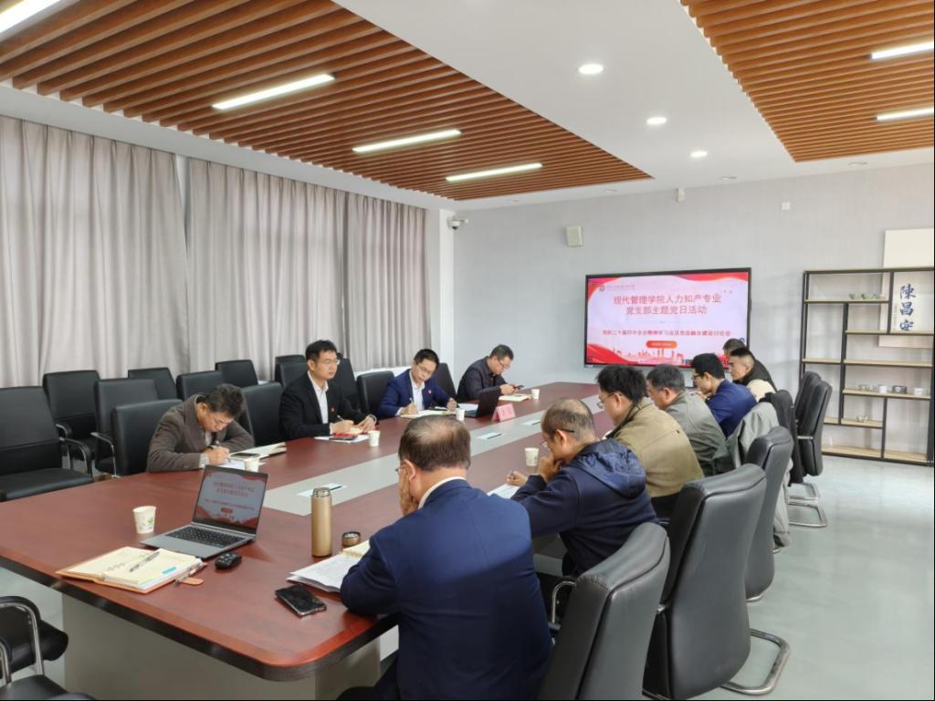 12月3日,人力知产党支部组织开展了以“深入学习贯彻党的二十届四中全会精神,深化党业融合,推动专业高质量发展”为主题的党日活动。学校党委副书记、校长余闯到会指导,组织部、现代管理学院相关负责人及支部全体党员参加会议。会议由党支部书记杨军明主持。