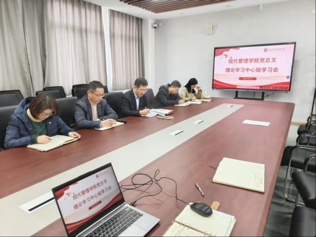 2025年12月31日,浙工贸现代管理学院党总支在瓯江口校区现代管理学院A栋315会议室召开理论学习中心组学习会,学习《中国共产党思想政治工作条例》(以下简称《条例》)、习近平总书记在党的二十届四中全会上的重要讲话精神、中共中央政治局关于研究部署党风廉政建设和反腐败工作会议等。学院理论学习中心组成员、组织员等参加了学习会,党总支书记邵超群主持会议并作总结讲话。